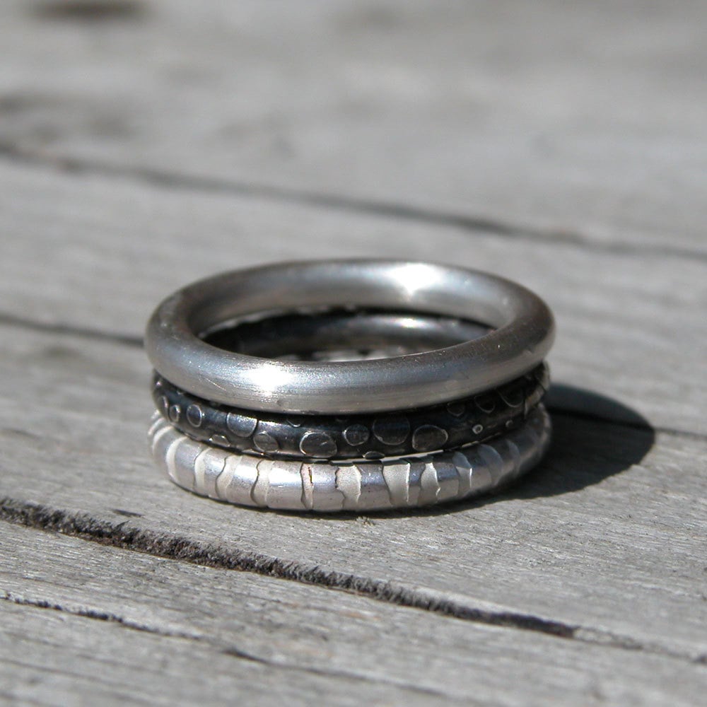ring silver sterling stacking rings stackable set four etsy textured custom handmade stack made handcrafted jewelry